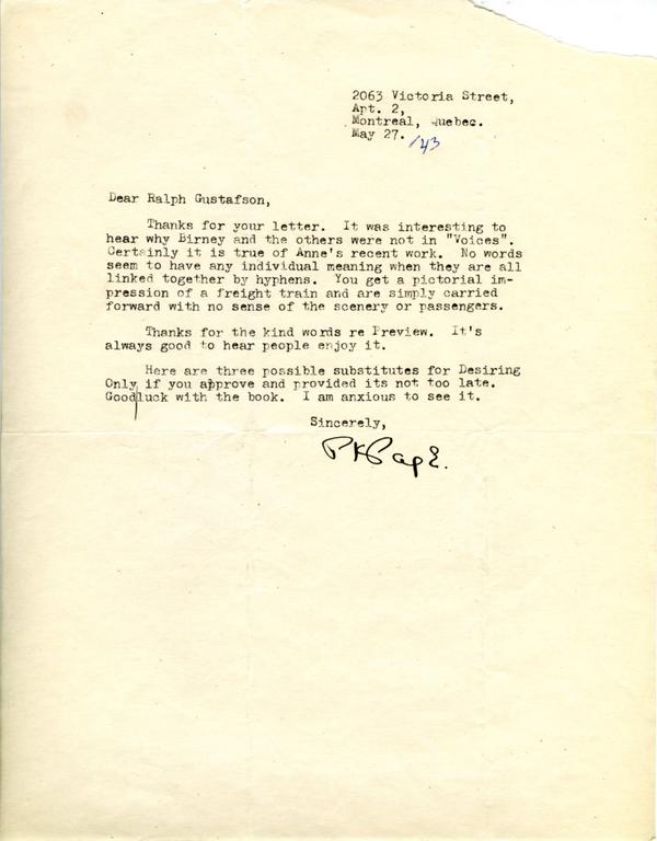 Correspondence, P.K. Page