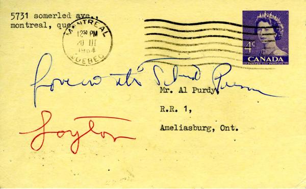 Irving Layton to A. Purdy